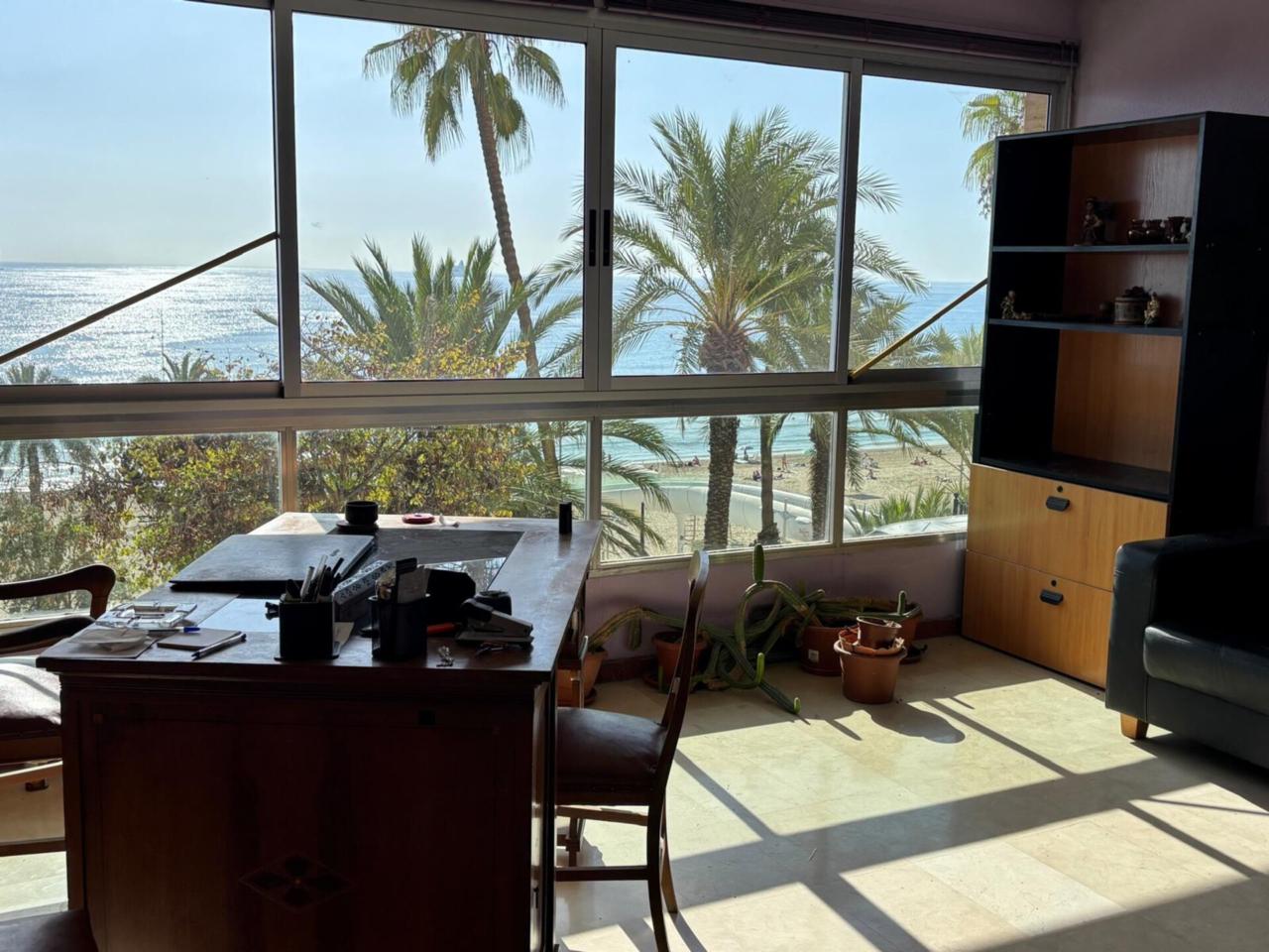 Entreplanta con Vistas: El mayor añadido. Esta planta está dividida en varias estancias y ofrece excelentes vistas directas al mar y a la Playa del Postiguet. Un espacio que se transforma en un despacho inspirador, una sala de reuniones exclusiva o un comedor con panorámicas.