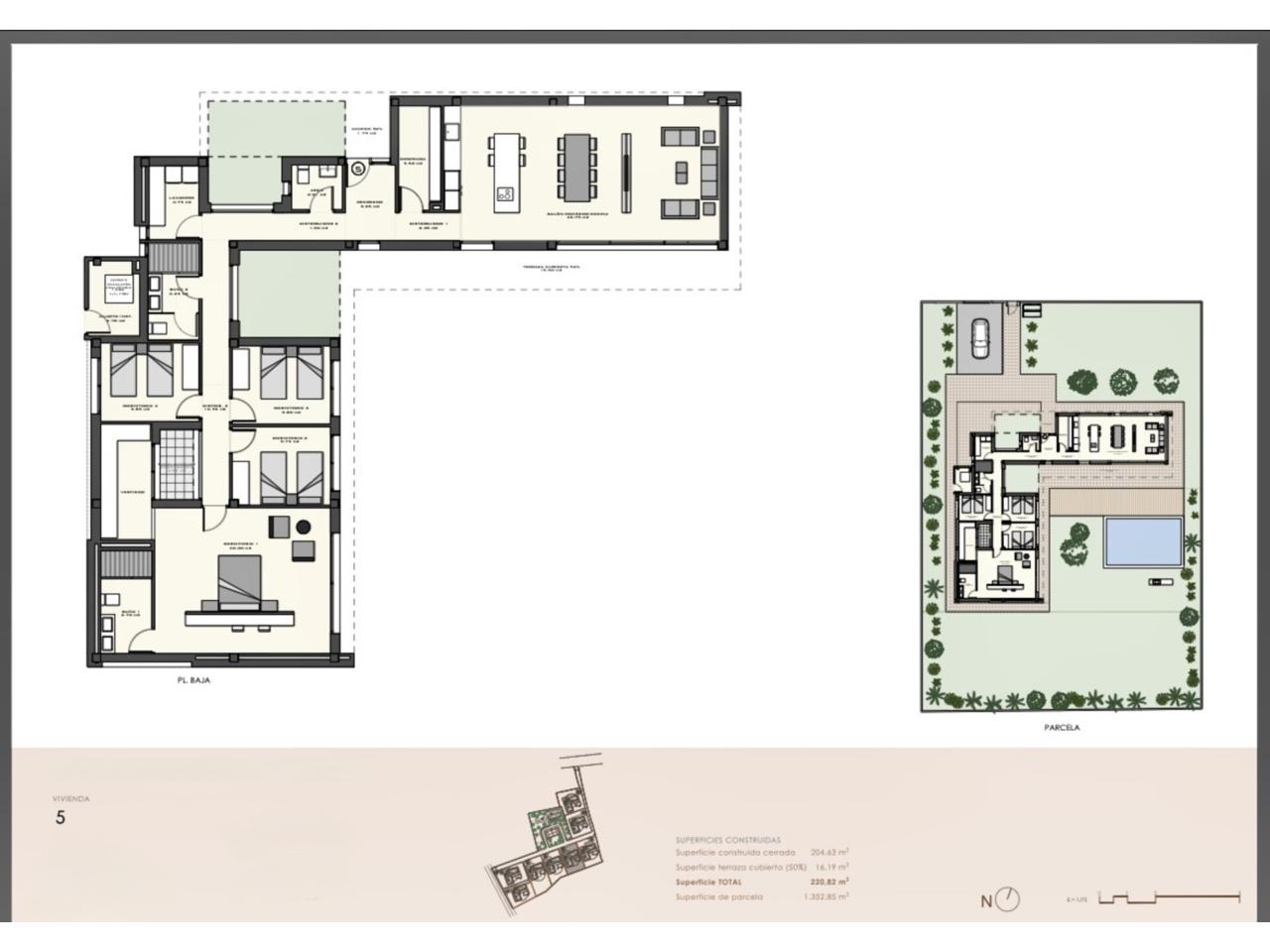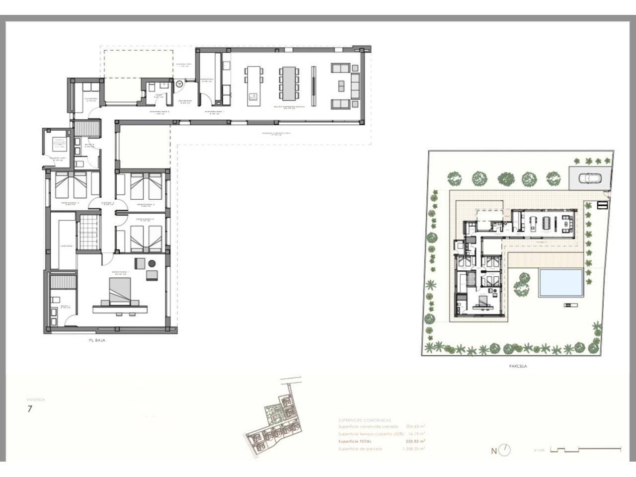 Cada villa cuenta con un bonito jardín privado con piscina, solárium, garaje y trastero. Además, están ubicadas en una urbanización privada con zonas verdes y deportivas para disfrutar en familia.