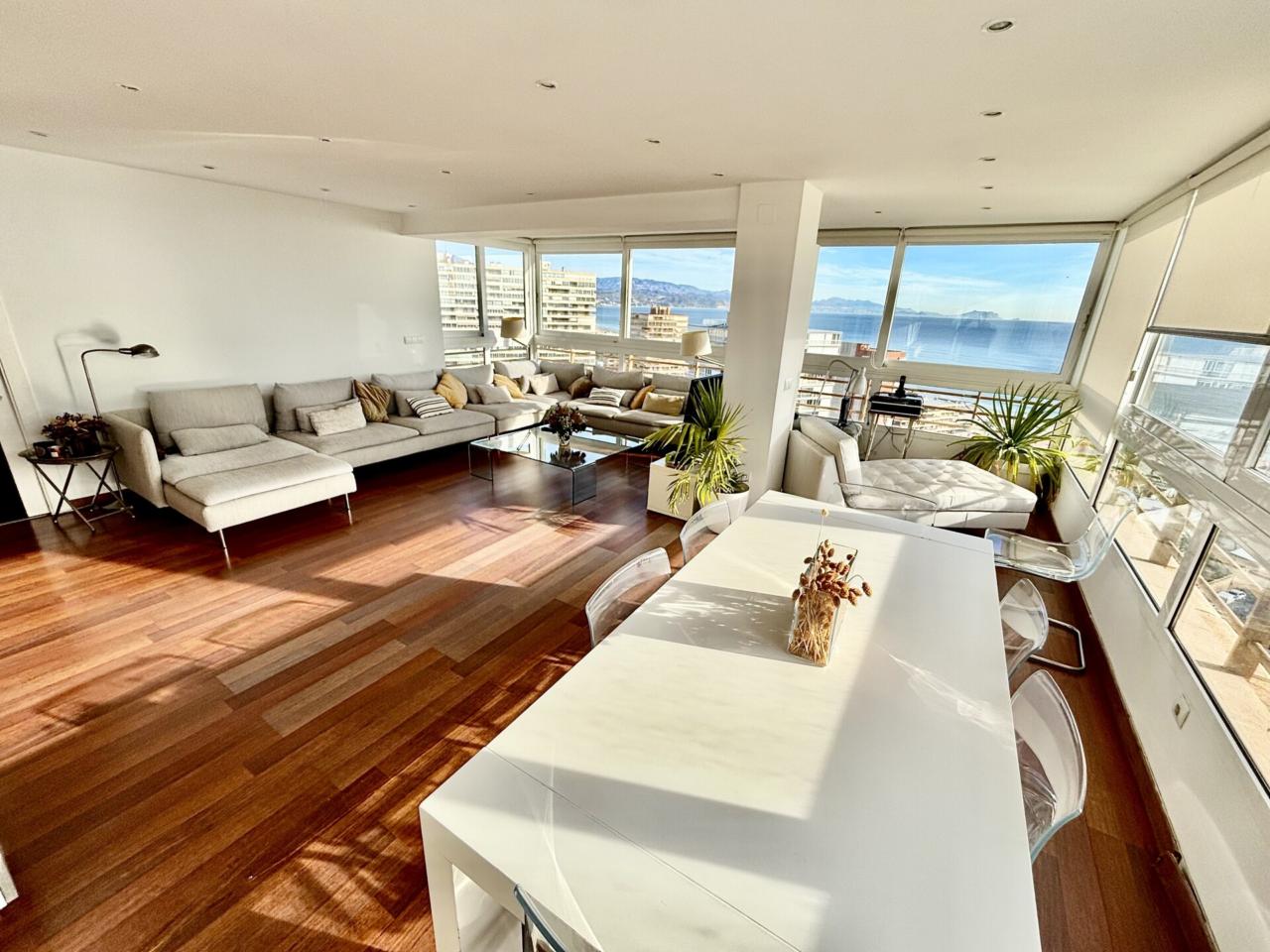 ¡Descubre esta exclusiva vivienda con impresionantes vistas al mar! Este espectacular piso de 159 m² se encuentra en una exclusiva urbanización privada, donde la seguridad y el bienestar son una prioridad. Con cuatro dormitorios exteriores, cada uno de ellos ofrece luz natural y unas bonitas vistas despejadas. El amplio salón comedor en esquina, con ventanales que parecen abrirse al mar, es el lugar perfecto para disfrutar de momentos inolvidables con amigos y familiares.