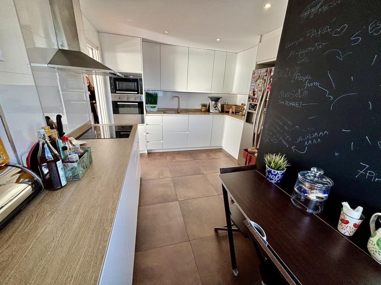 Cuenta con cocina recientemente reformada, dos baños completos que combinan funcionalidad y estilo, asegurando comodidad para todos los miembros de la familia. El dormitorio principal incluye un amplio vestidor, un baño en suite y acceso a una terraza con vistas al mar.