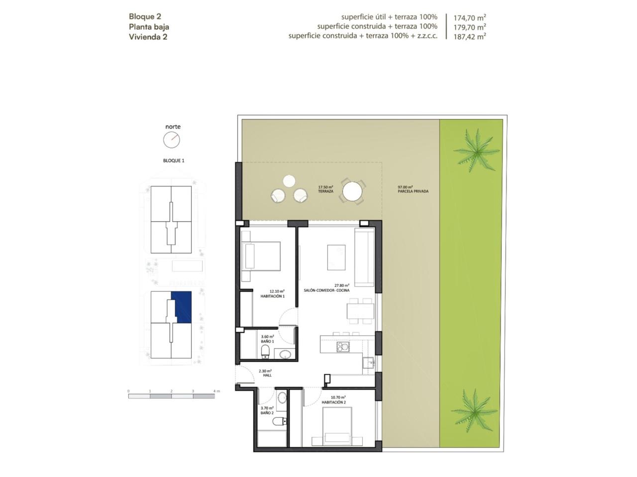 2 Dormitorios + 2 Baños superficie 128m2 construidos (113m2 útiles).